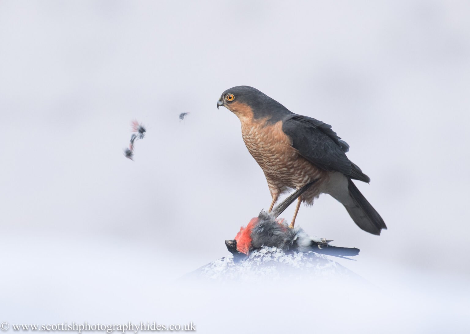 The Sparrowhawk is visiting several times almost every day along with a host of other species such as Jay, Great Spotted Woodpecker, Nuthatch. Siskin, Goldfinch and Lesser Redpoll are regular visitors at certain times of the year along with several other species of finches and Tits. We also get regular visits from Buzzards and Roe Deer and in the Summer months its not unusual to get daylight visits from Tawny Owls and Pine Martens.